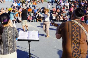 Durante la jornada se presentaron distintos ballets y grupos en vivo, entre ellos Kimen Nahuen, escuela de Malambo Santos Vega, Dúo Kundalini, La Yunta Sachera y el cierre musical a cargo de Selena Valdez, convocando a un público que se acercó a disfrutar del encuentro pese al viento característico de la región. “Los vecinos siempre tienen una gran participación. El clima acompañó con sol y estos espacios son necesarios para que las familias vengan, disfruten y compartan”, expresó Pisani.