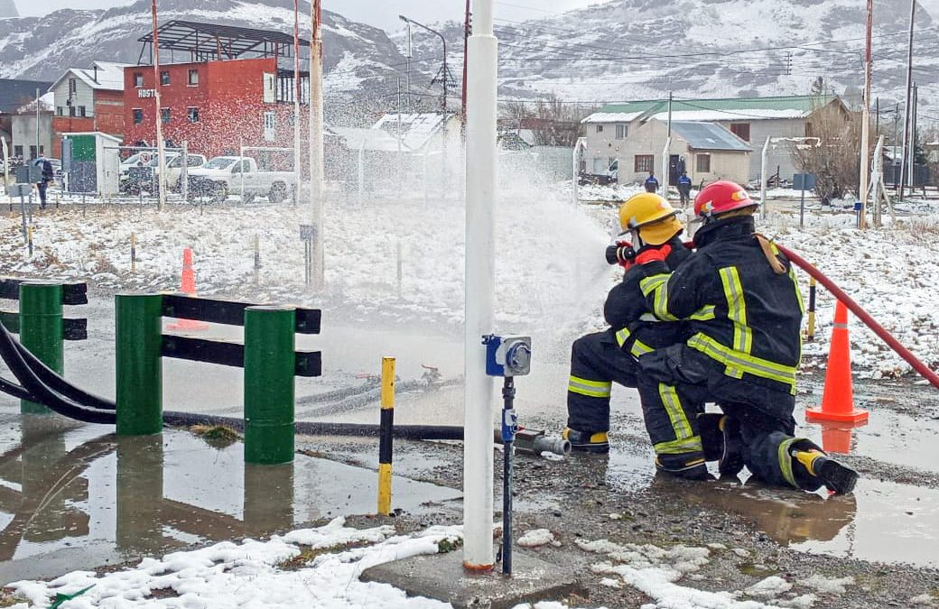 En el simulacro participó personal de la División Cuartel 17ª, en conjunto con trabajadorxs de Distrigas S.A., la División Comisaría El Chaltén y personal del Puesto Sanitario de dicha localidad.
