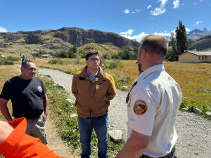 El gobernador de Santa Cruz, Claudio Vidal, junto al intendente de El Chaltén, Néstor Tico y Horacio Pelozo intendente del Parque Nacional los Glaciares, realizó un vuelo en helicóptero sobre las áreas afectadas por el incendio forestal, con el objetivo de evaluar en forma directa la situación actual y constatar la baja de los focos activos.