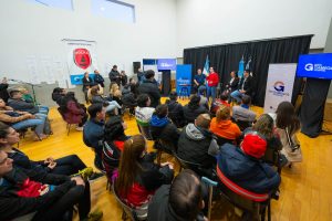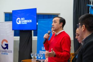 Durante el acto, realizado en el popular e histórico gimnasio ubicado en el barrio Jorge Newbery, el jefe comunal estuvo acompañado por la secretaria de Planificación y Obras Públicas, licenciada María Grasso; el director General de Deportes, Cristian Smart, y también por el diputado por Río Turbio, Carlos Godoy.