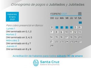 Mañana sábado 30 de enero tendrán acreditado sus haberes en sus cuentas los jubilados y jubiladas, como así también agentes retirados de la Policía. Recordamos a todos y todas que el Banco Santa Cruz aumentó el límite de extracción de la jubilación en cajeros automáticos; esto puede realizarse ingresando en el home banking y siguiendo los pasos indicados (Home Banking – Cuentas- Operaciones- Límites de extracción).