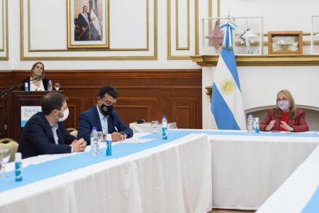 En primer lugar, se efectuó la firma del convenio para la ejecución de la obra “Pasarelas Plazoleta ‘2 de Abril’, de la localidad de Puerto Deseado”, que estará a cargo del Municipio.