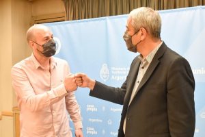 Gustavo González, además de oficiar como un nexo más en la saludable relación que mantiene el Gobierno Nacional con los municipios, pudo hablar con el ministro de Hábitat y Desarrollo Territorial sobre el plan de vivienda ‘Casa Propia’ para Puerto Deseado. Cabe recordar que la licitación se encuentra abierta desde el viernes y contempla la construcción de 64 casas más para los vecinos de la localidad. Por si esto fuera poco adelantó que fijará fecha en el corto plazo para la entrega de las 103 Viviendas en la ciudad deseadense, evento para el que invitó al ministro Jorge Ferraresi.