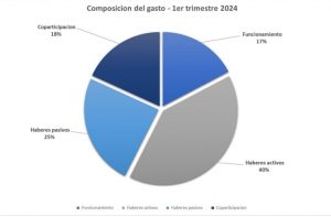 Respecto de la composición del gasto de estos primeros tres meses, Jaramillo informó que el 65% corresponde a salarios, el 18% se distribuye en concepto de coparticipación a los municipios y el saldo restante, (se incluyen allí los pagos de la deuda pública de la provincia) queda para el funcionamiento del Estado.