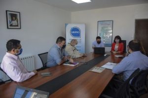 La ministra de la Producción, Comercio e Industria, Silvina Córdoba; junto al secretario de Comercio, Leandro Fadul; y la directora Provincial de Consumo, Fany Díaz, mantuvo un encuentro con los gerentes de Carrefour, Javier Laveccia; de La Anónima, Marcos López Delpero; y de Diarco, Fabián Quero y Marcos Céspedes, en el marco del programa “Más Precios Cuidados”.