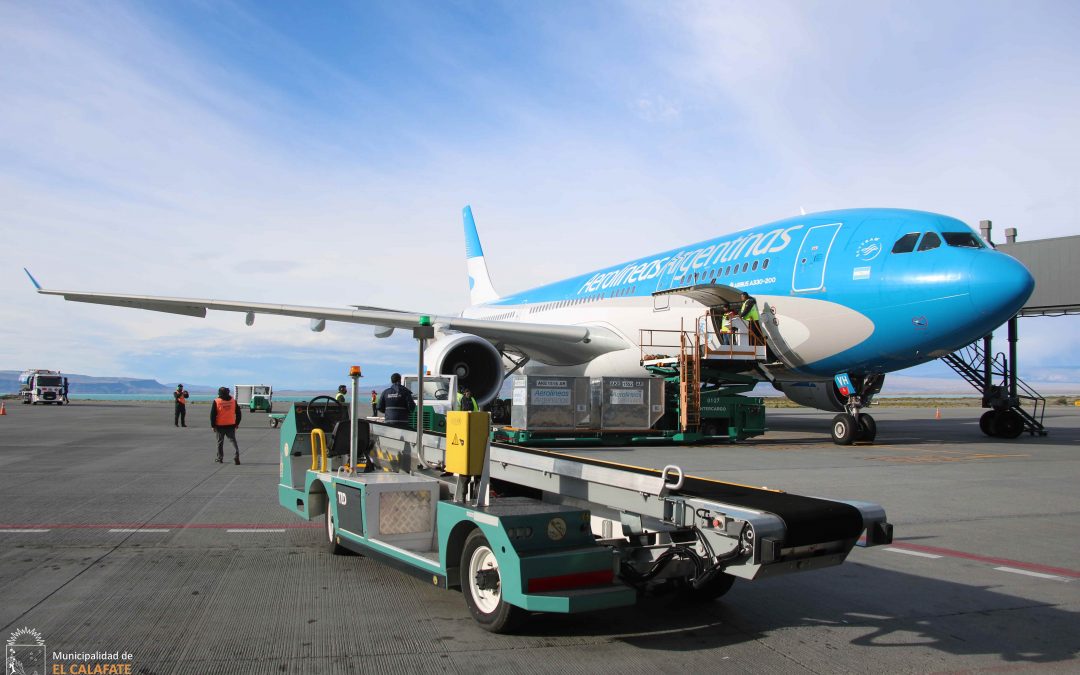 Tras gestiones del intendente Belloni, hoy llegó el primer vuelo de Aerolíneas Argentinas con su aeronave Airbus 330, el avión con mayor porte y capacidad de pasajeros de la aerolínea de bandera. Además, el Aeropuerto de El Calafate recibió equipamiento especial de la empresa Intercargo.