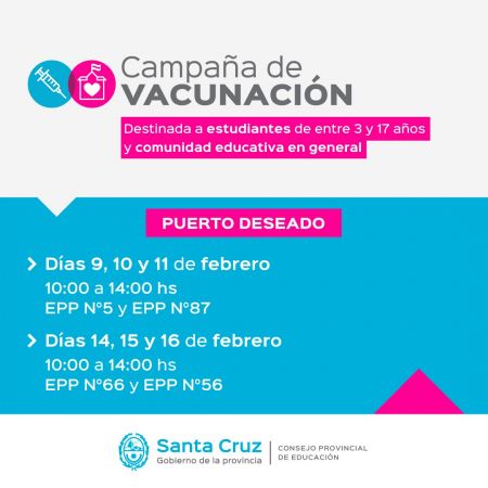 El Gobierno de Santa Cruz, a través del Consejo Provincial de Educación, lleva adelante una fuerte campaña de vacunación en articulación con el Ministerio de Salud en distintas instituciones educativas con motivo de garantizar el retorno seguro a las aulas. La jefa de Gabinete del CPE, Ninette Milostic, mencionó que se encuentran trabajando de acuerdo a las indicaciones y recomendaciones vigentes.