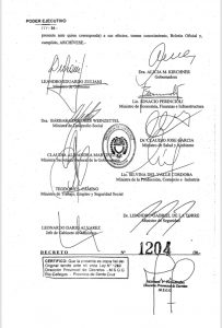 Artículo 52º.- El presente decreto será refrendado por los señores Ministros Secretarios en los Departamentos de Gobierno, de Economía, Finanzas e Infraestructura, de Desarrollo Social, de Salud y Ambiente, de la Secretaría General de la Gobernación, de la Producción, Comercio e Industria, de Empleo, Trabajo y Seguridad Social, de Seguridad, y de la Jefatura de Gabinete de Ministros.-