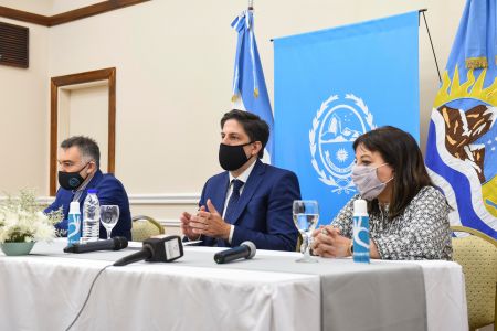 Nicolás Trotta se encontraba acompañado por el jefe de Gabinete, Leonardo Álvarez y la presidenta del Consejo Provincial de Educación, María Cecilia Velázquez. La conferencia se hizo antes de la reunión que mantuvieron los funcionarios con representantes de SADOP.